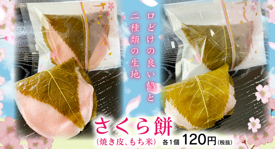 口どけの良い餡と2種類の、餅っとした生地の違いを楽しんでいただける、さくら餅です。