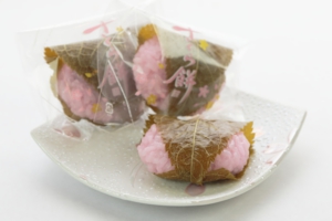 口どけの良い餡と2種類の、餅っとした生地の違いを楽しんでいただける、さくら餅です。